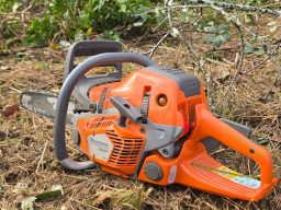 Umgestürzte oder alte Bäume werden mit der Motorsäge bearbeitet.